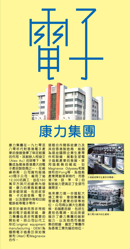 一九七零年代,大埔被規劃成第二代新市鎮,發展大埔工業村,吸引當年的電子業龍頭康力生產收音機、電子錶、卡式帶錄音機,甚至電視遊戲機。嘉士伯、日清、益力多等外資公司亦相繼進駐,確立大埔工業村與國際商貿的連繫。即使一九八零年代後,製造業出現「港資北上」現象,這段歷史依然印證香港人戰後復甦及迎難而上的精神所在。